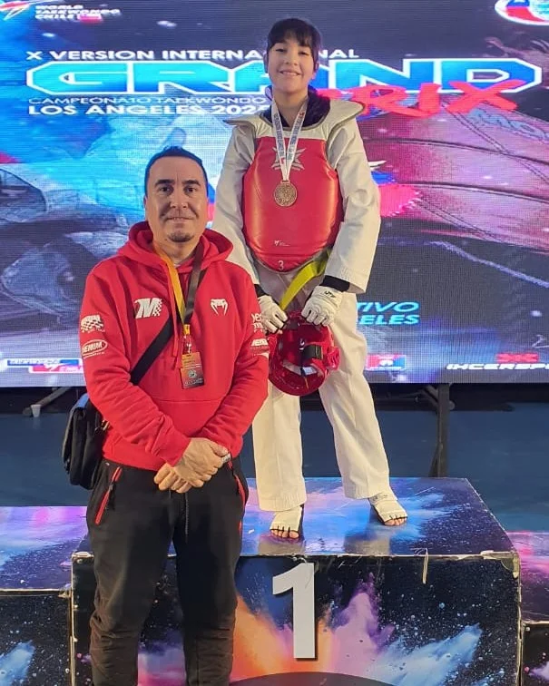 En la categoría Preinfantil, Laura Quiroz Lagos, integrante del Taller Municipal de Taekwondo y del Club Sokkuram, logró la medalla de Oro, acompañada por su profesor Álvaro Sepúlveda.