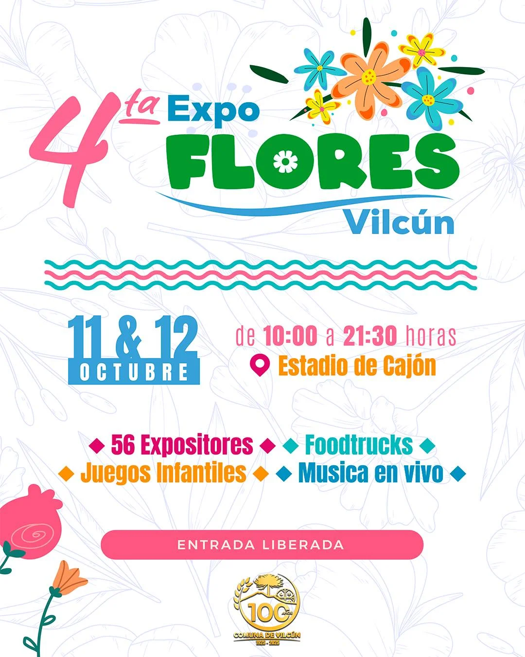 La Ilustre Municipalidad de Vilcún, a través de nuestra Alcaldesa Katherinne Migueles Muñoz y el Honorable Concejo Municipal, tiene el agrado de invitar a toda la comunidad a ser parte de la Cuarta Versión de la Expo Flores.